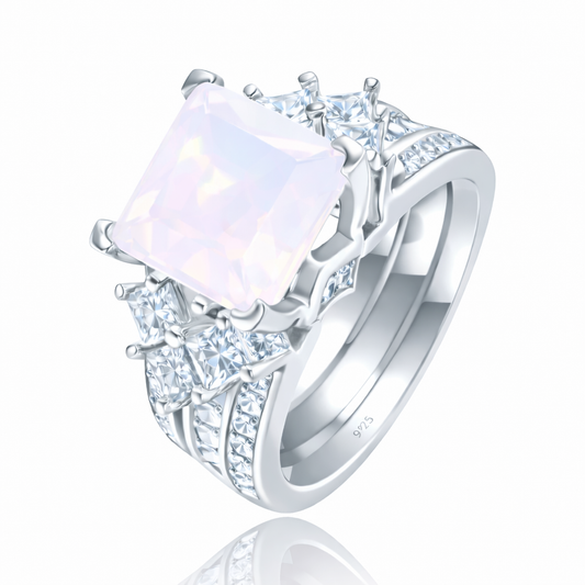 PRE-ORDER - 925 Sterling Silver Princess Cut, White Moonstone Tri-Band Ring (Choose your plating)
