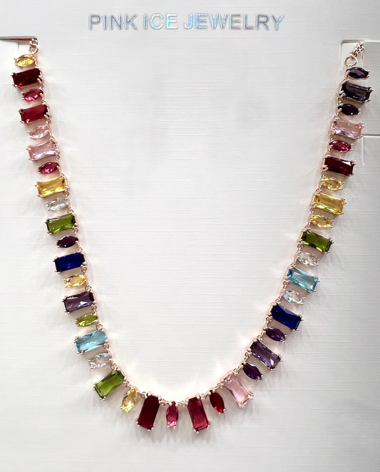Rainbow Baguette & Marquise Cut Gemstone Necklace on Rose Gold