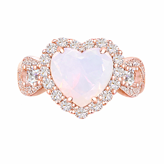 White Moonstone Halo Heart Infinity Ring