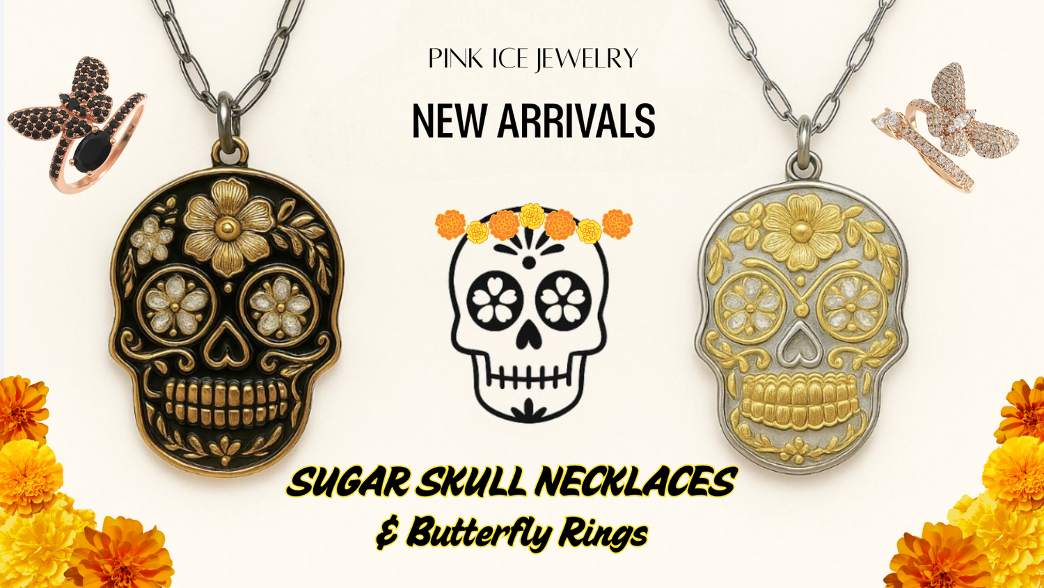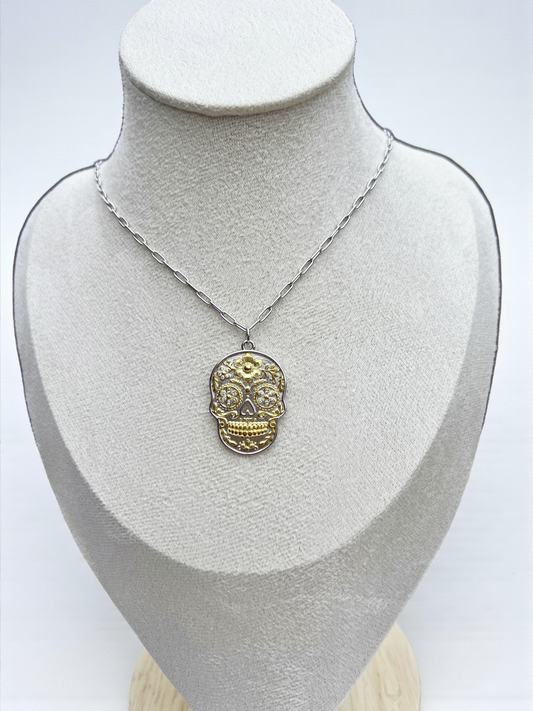 925 Sterling Silver & Yellow Gold Sugar Skull Pendant Necklace