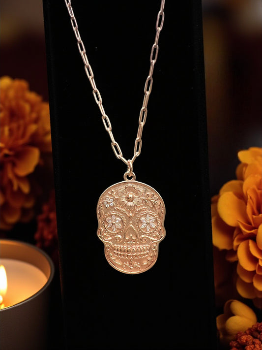 925 Sterling Silver Sugar Skull Pendant Necklace - Rose Gold
