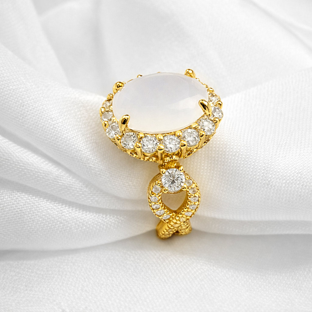 925 Sterling Silver Oval Cut Milky White Crystal Infinity Band Ring (Choose your plating)