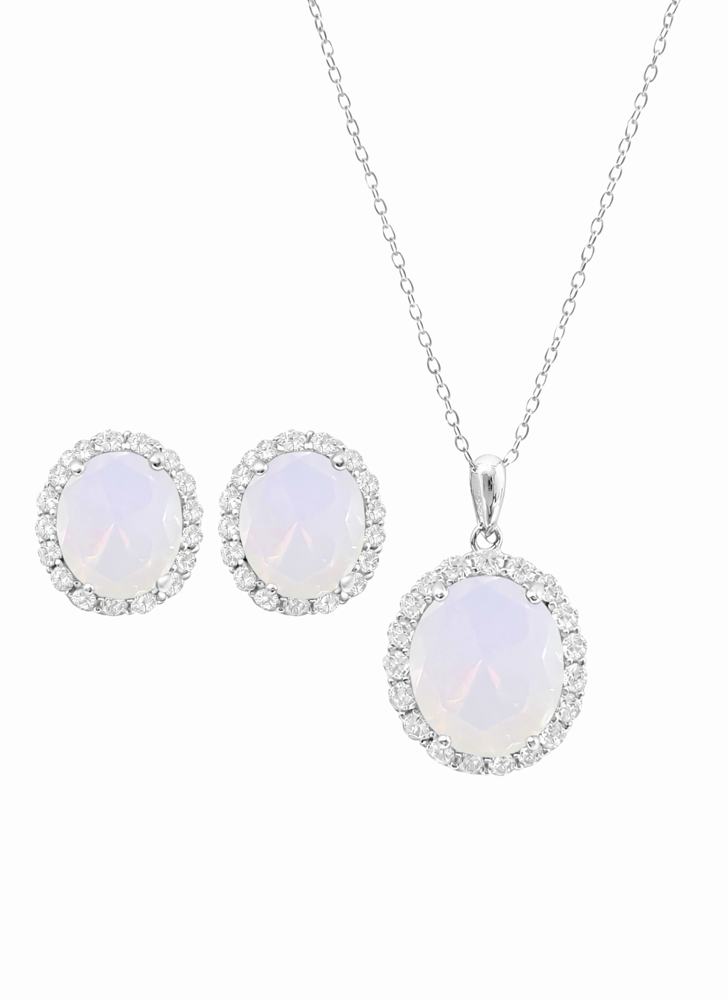 *PRE-ORDER - 925 Sterling Silver Oval Cut White Moonstone Necklace & Earrings Set (Choose your Plating)