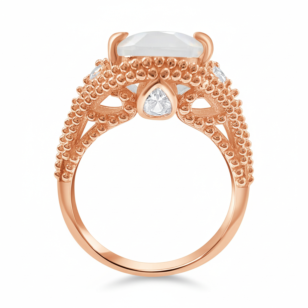 *PRE-ORDER* 925 Sterling Silver Oval Genuine White Moonstone Beaded Shank Ring