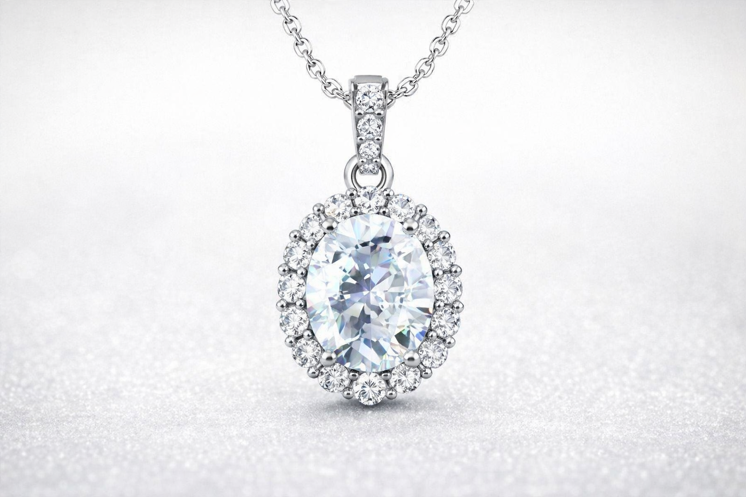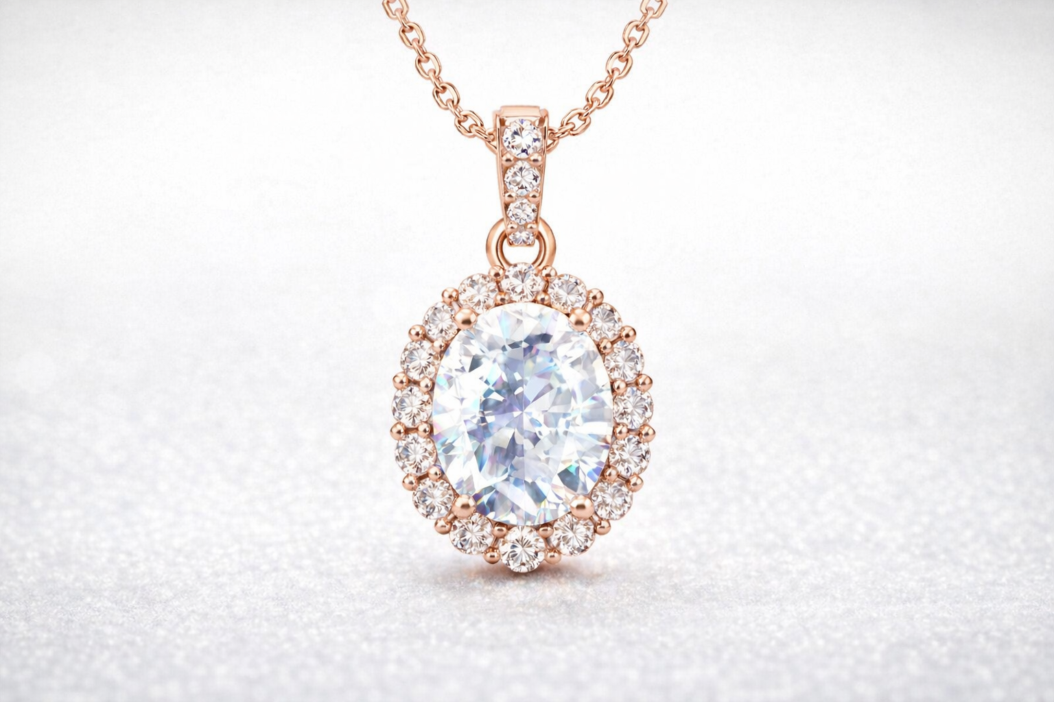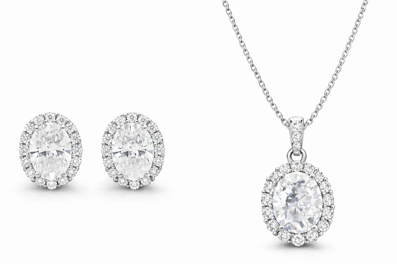 Oval Cut Diamond CZ Neclace & Earrings Jewelry Set (Rhodium or Rose Gold)